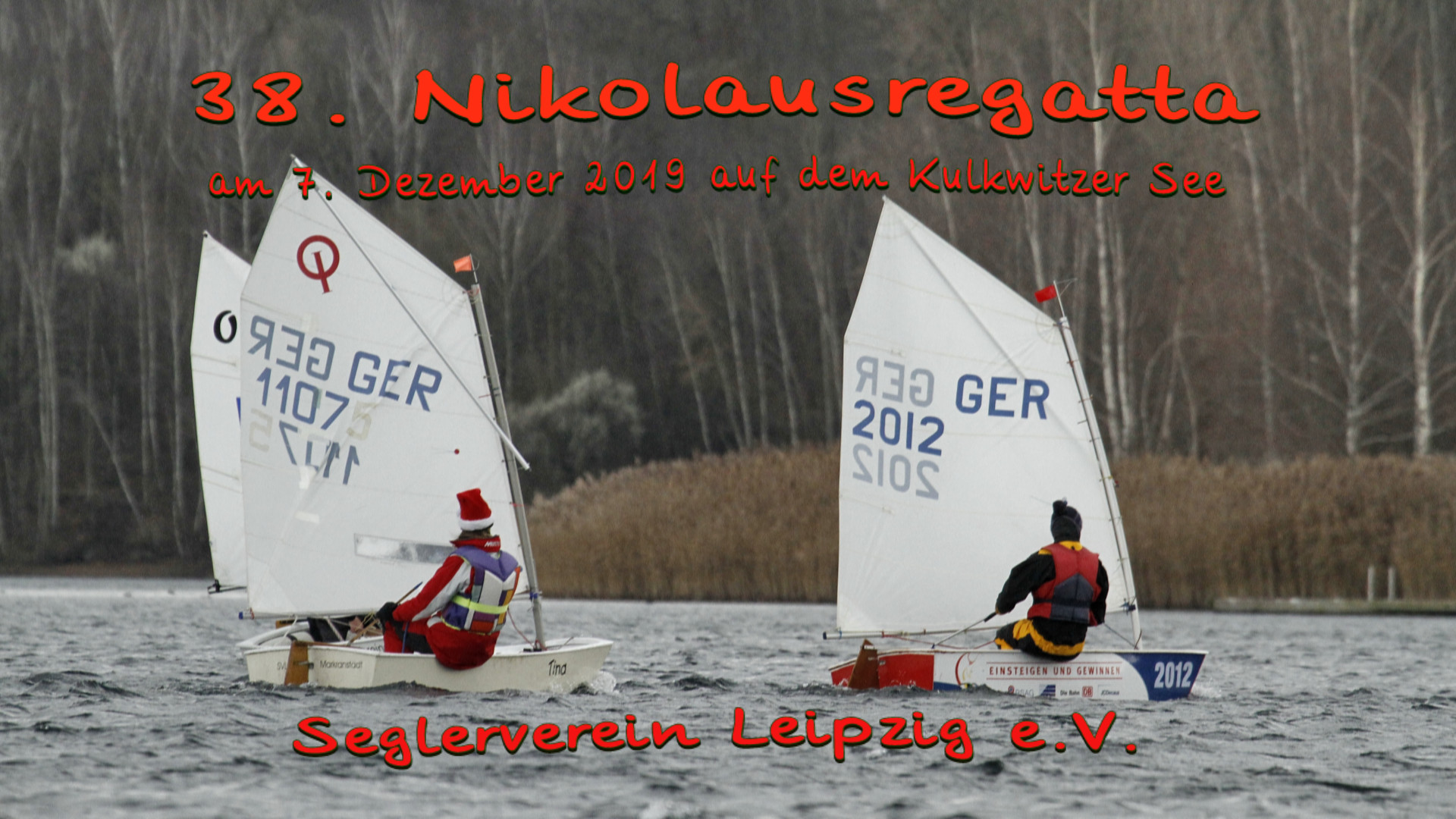 Bewegte Bilder von der zweiten Wettfahrt der 38. Nikolausregatta vom 7. Dezember 2019 auf dem Kulkwitzer See. Mit 24 Teilnehmern aus fünf Vereinen.